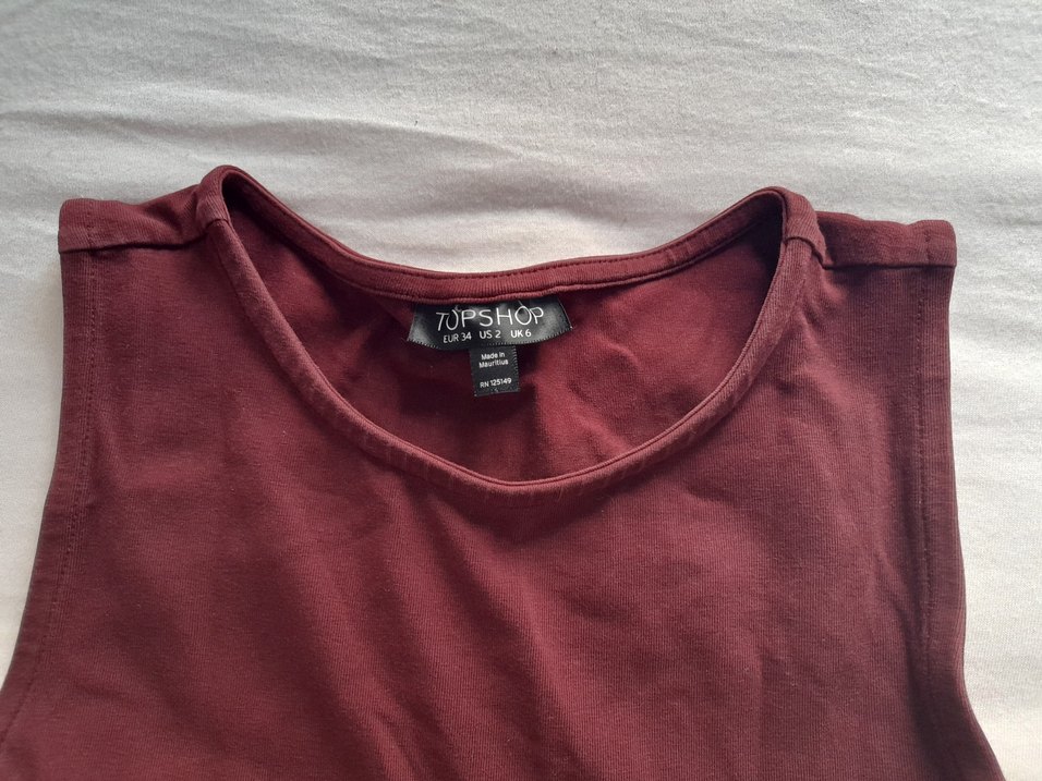 Olculer: Boy: 54cm, Koltukalti: 33cm, Bel: 30cm. Koton/Likra kumas, sifir kol,kalin askili. Bordo renktir. Belden asagi genisleyen etek kismi bulunur. Beden:34