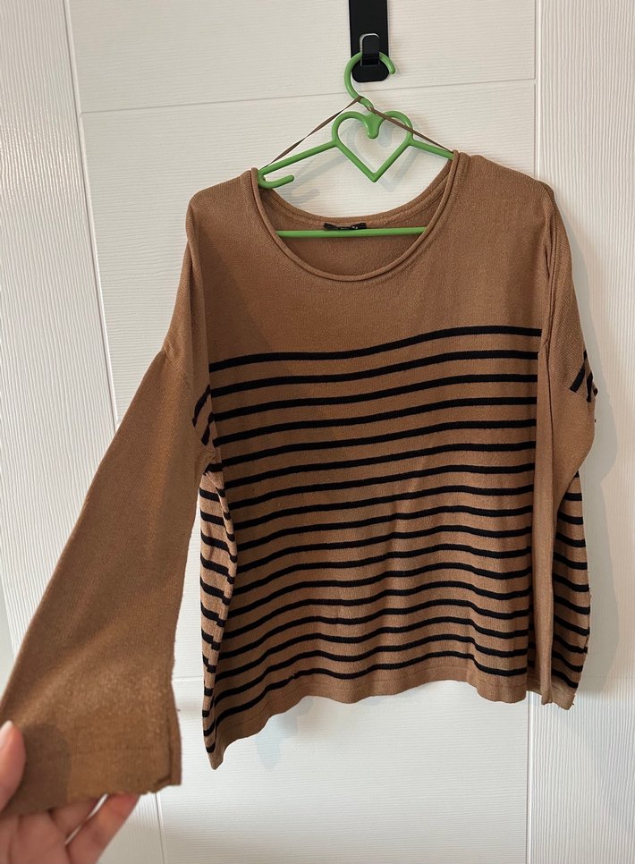 Topshop Hardal-Siyah Çizgili Triko Kazak Tunik gibi kullanılabilecek geniş kesim bir trikodur. Kış mevsiminde giyilebilecek kalın bir trikodur. Tayt ve dar pantolon üzerine çok şık olur. Ön kısmında defosu vardır.