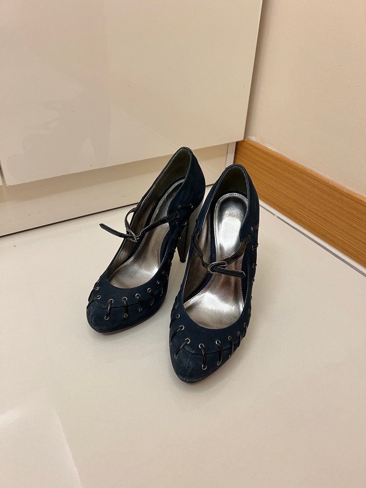 Topshop lacivert zimba detayli platform kalin topuklu ayakkabi