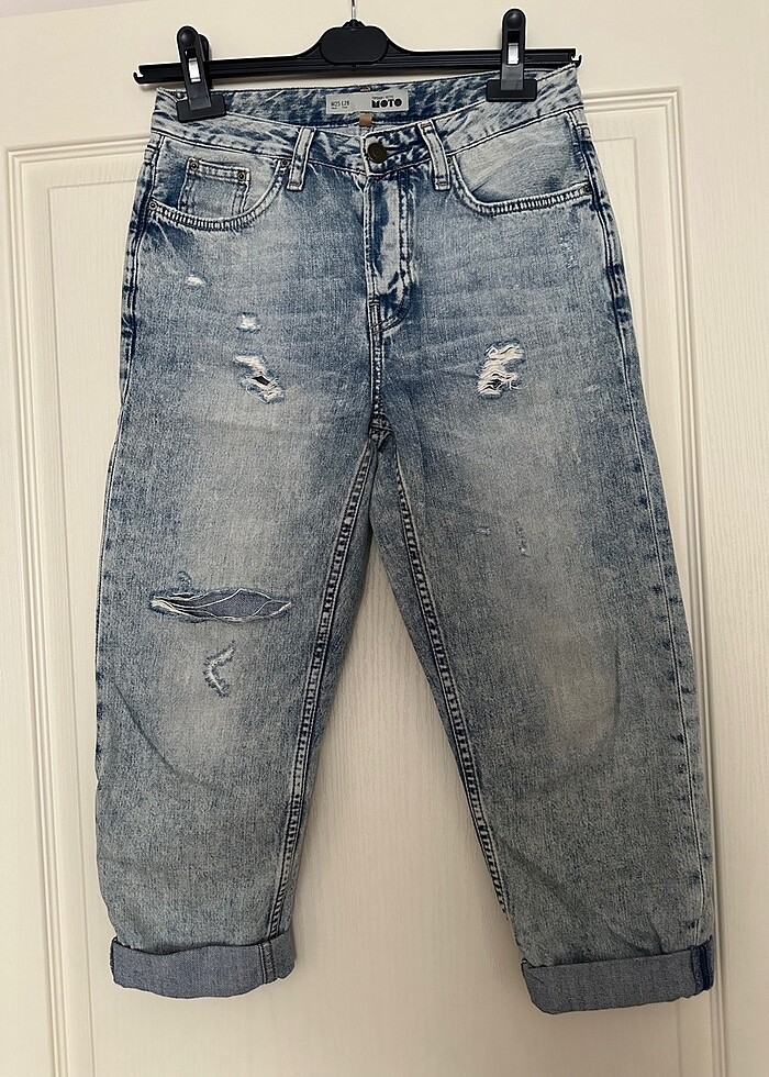 Topshop marka yırtıklı, düşük bel bol mom jean. Bedeni 25/28 dir.