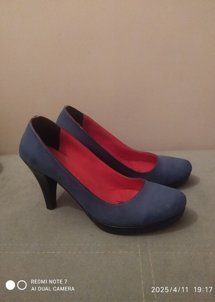 Mavi 37 numara topuklu ayakkabı az giyilmiş saglam durumda