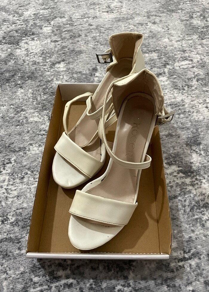 Beyaz topuklu 11 cm topuk boyu bir kez giyildi çok rahattır gelinlik altına giyildi