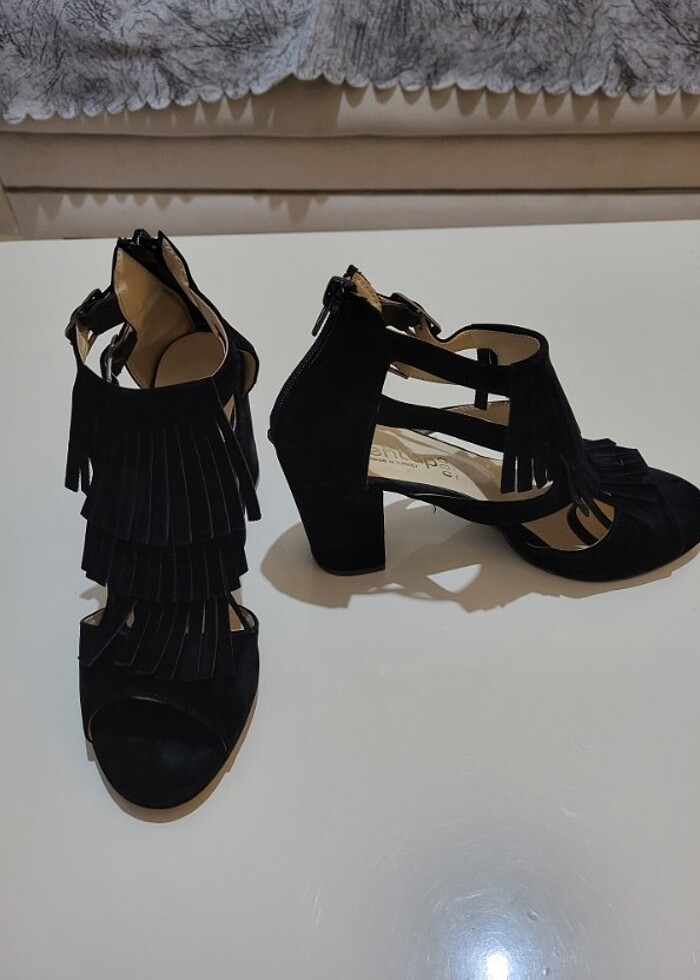 Topuklu açık süet ayakkabı. Bir iki kere giyildi tertemiz ürün. 37 numara. Topuk boyu 8 cm.