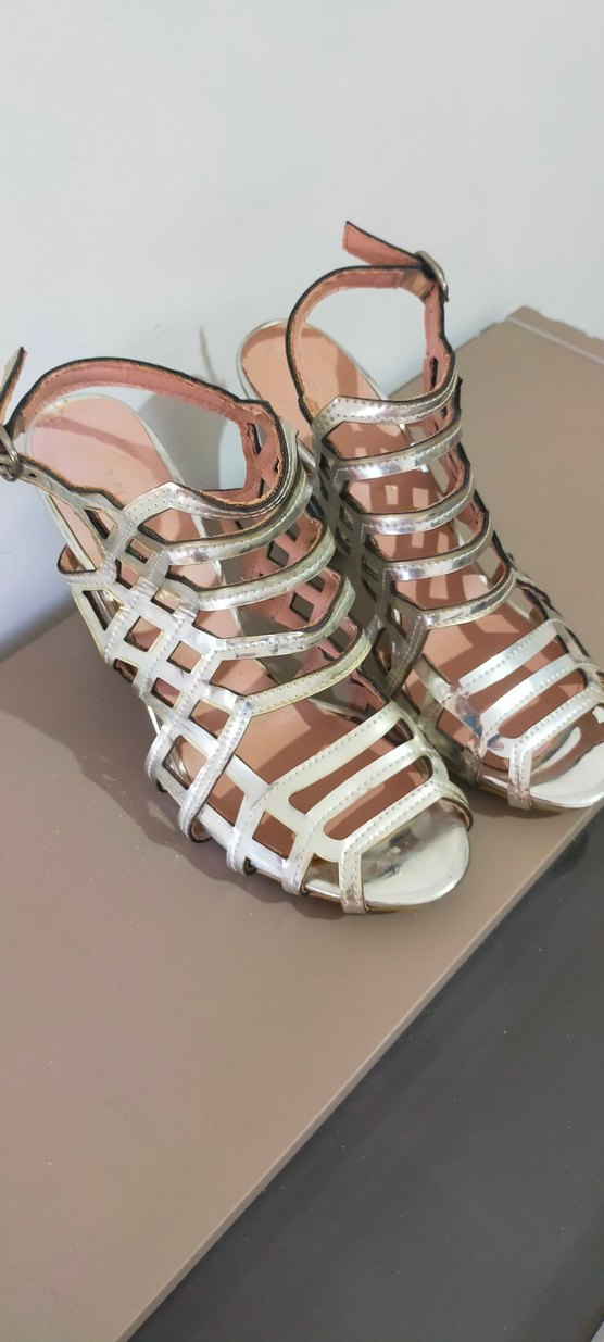 gümüş renk kafes topuklu ayakkabı