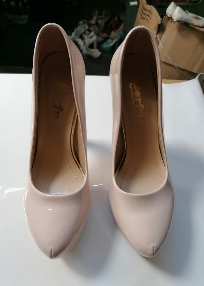 Kendi imalatımızdır. Ürün sıfırdır. Topuk boyu 13cm. Ürün sıfırdır. Renk krem rebgi toz pembe gibidir.