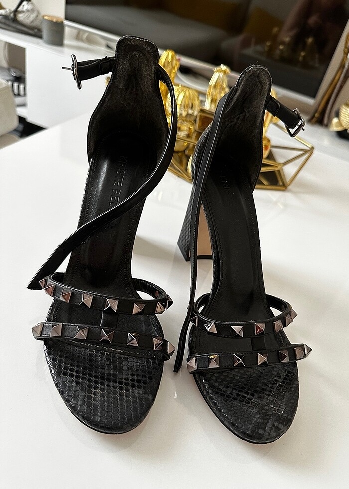 Krıste bell marka siyah yılan derisi deseninde 38 numara kalın topuklu ayakkabı