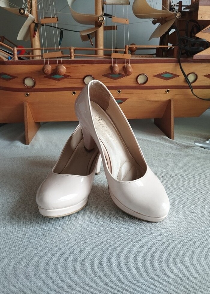 Az kullanılmıştır. Fotoğraflarda lekeli kısımları görebilirsiniz. Ayak numaram büyüdüğü için satıyorum. Tabanı rahattır. Pudra rengidir.