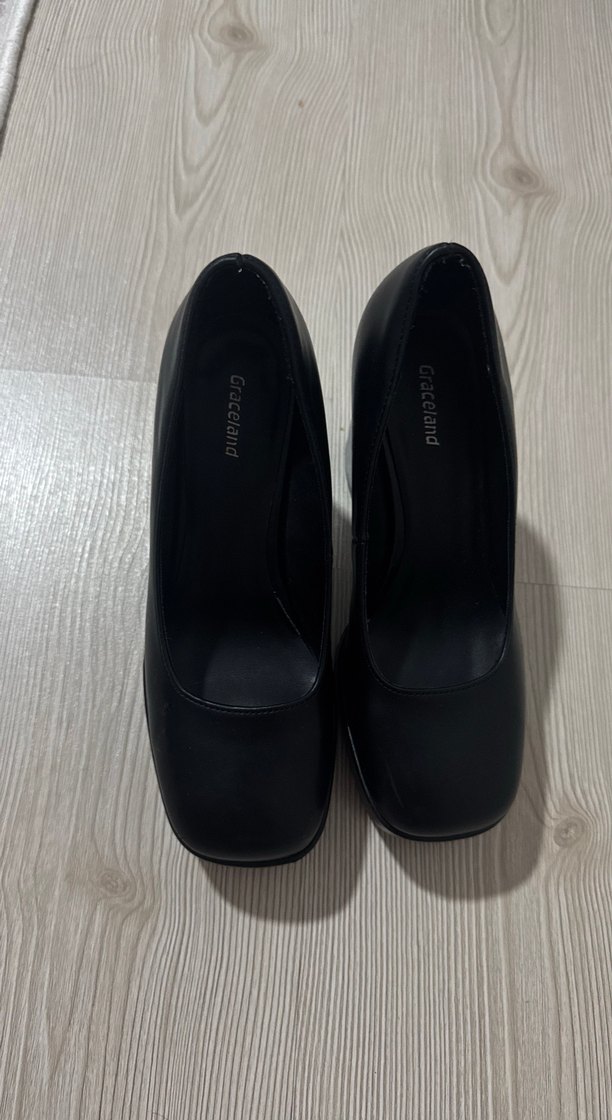 Hiç giyilmedi Siyah platform topuklu ayakkabılar, kauçuk malzemeden blok topuklu ve minimalist tasarıma sahip, ofis için zahmetsiz şıklık sunar.