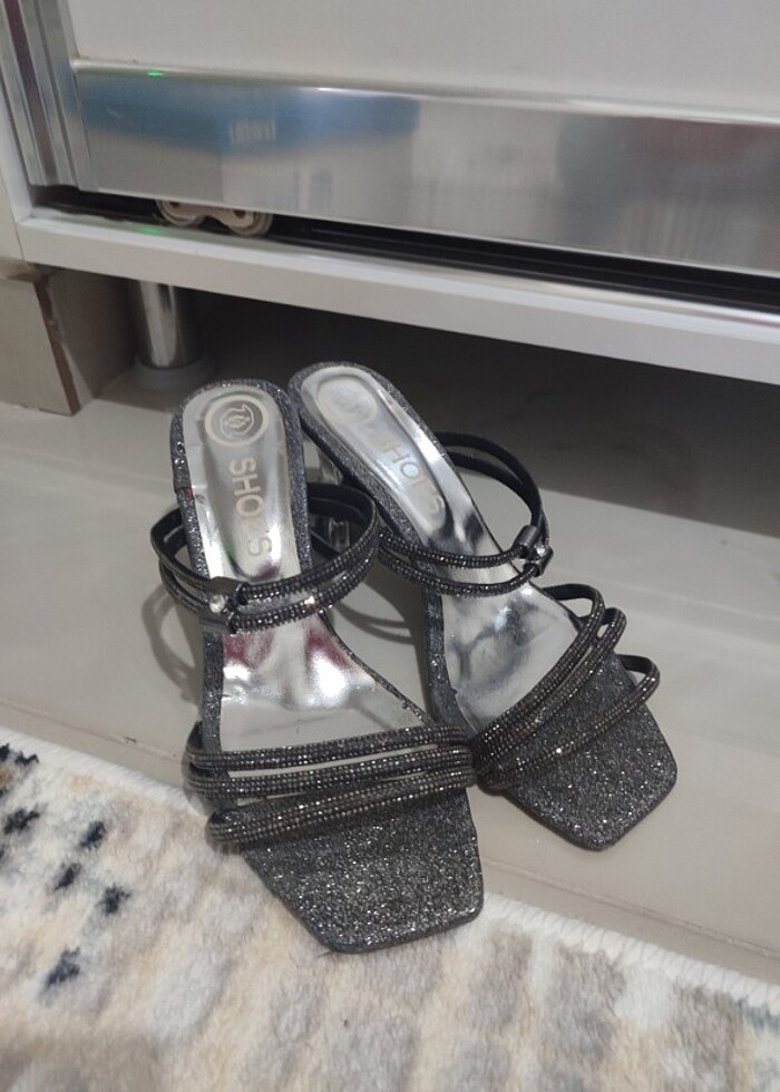 2 kez giydim çok rahat bir ayakkabı. Gri antrasit rengindedir. Simlidir. Hem terlik hem de topuklu olarak tercih edebilirsiniz. Topuğu 5-6 cm'dir. Kalın topukludur. Normalde 37 numara kullanıyorum ama kalıbından dolayı 38 aldım.