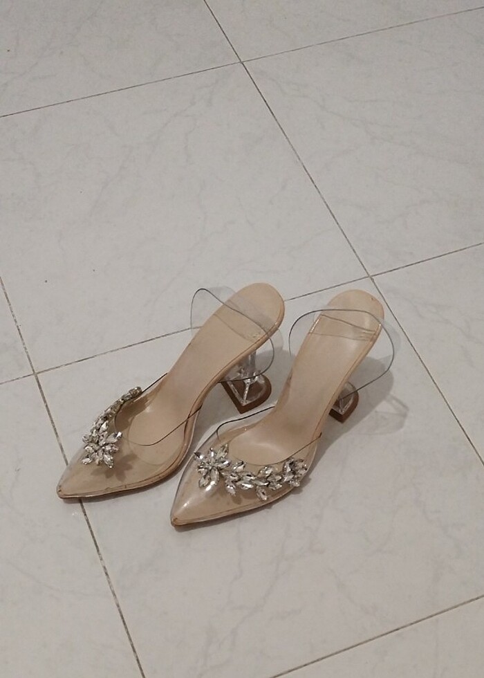 Şeffaf topuklu ayakkabı. Bir kere nişanımda giydim . Bir daha kullanılmadı . Deformesi yoktur.