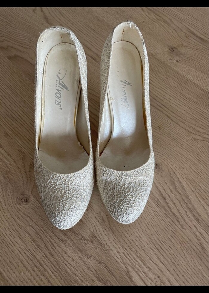 Düğün-nikah törenlerinde giyilebilecek platform kısmı taşlı topuklu ayakkabı