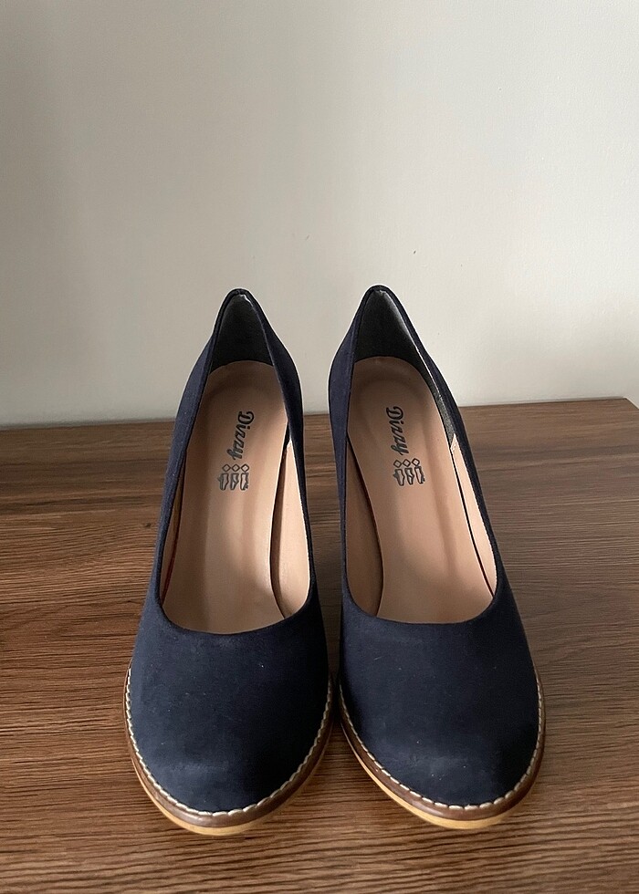 Lacivert ahşap yüksek topuk detaylı ayakkabı