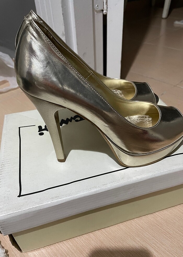 38 numara Dore renk parlak platform topuklu ayakkabı.ayaklarım taraklı olduğundan Küçük geldiği için hiç giyilmedi kutusunda gönderilecektir.