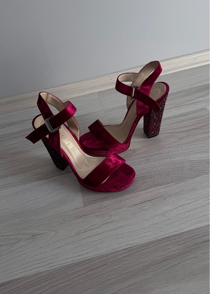 Sadece 1 kere mezuniyette giyilmiş temiz simli topukları olan şık ayakkabı
