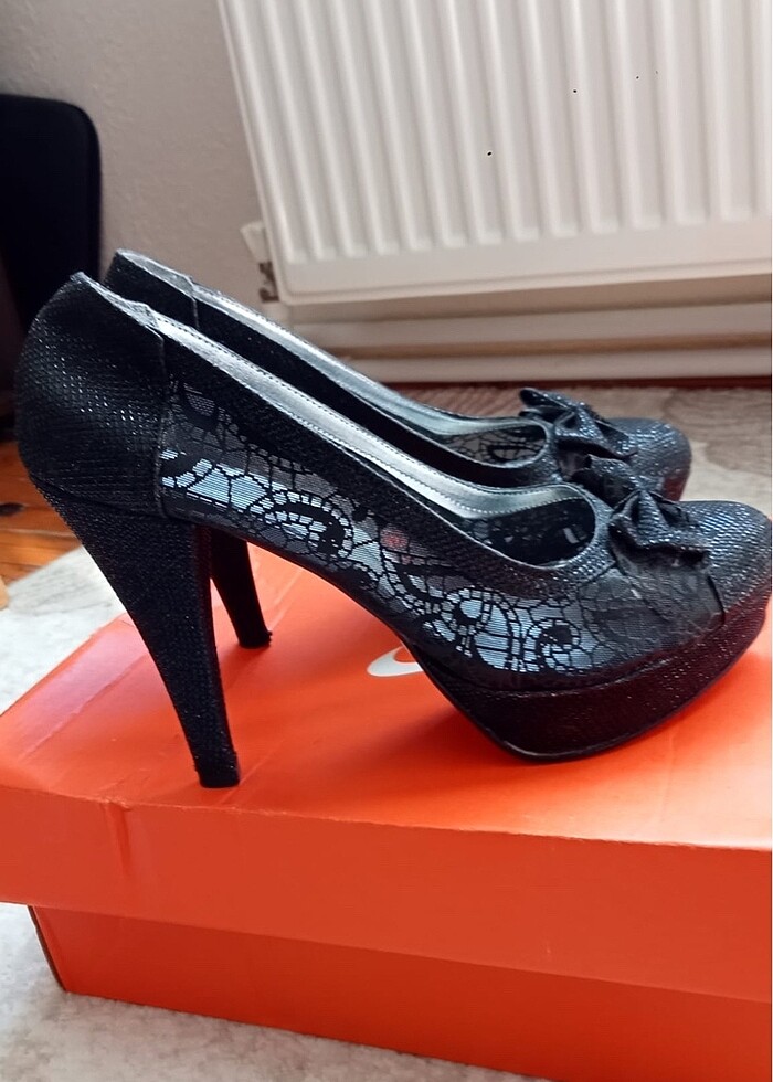 Ürün görseldeki gibi dantel detaylı topuk boyu 10 cm olup numarası 38 dir ve sadece bir kez kullanıldı . Fiyatı uygun tutuyotum alana hayırlı olsun ☺️