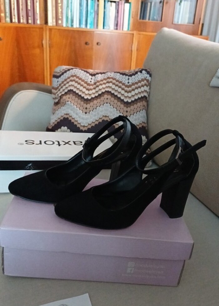 Topuklu süet ayakkabı. 38 numara. 2 defa giyildi. Siyah. Temiz ve hasarsız. 4-9 cm.