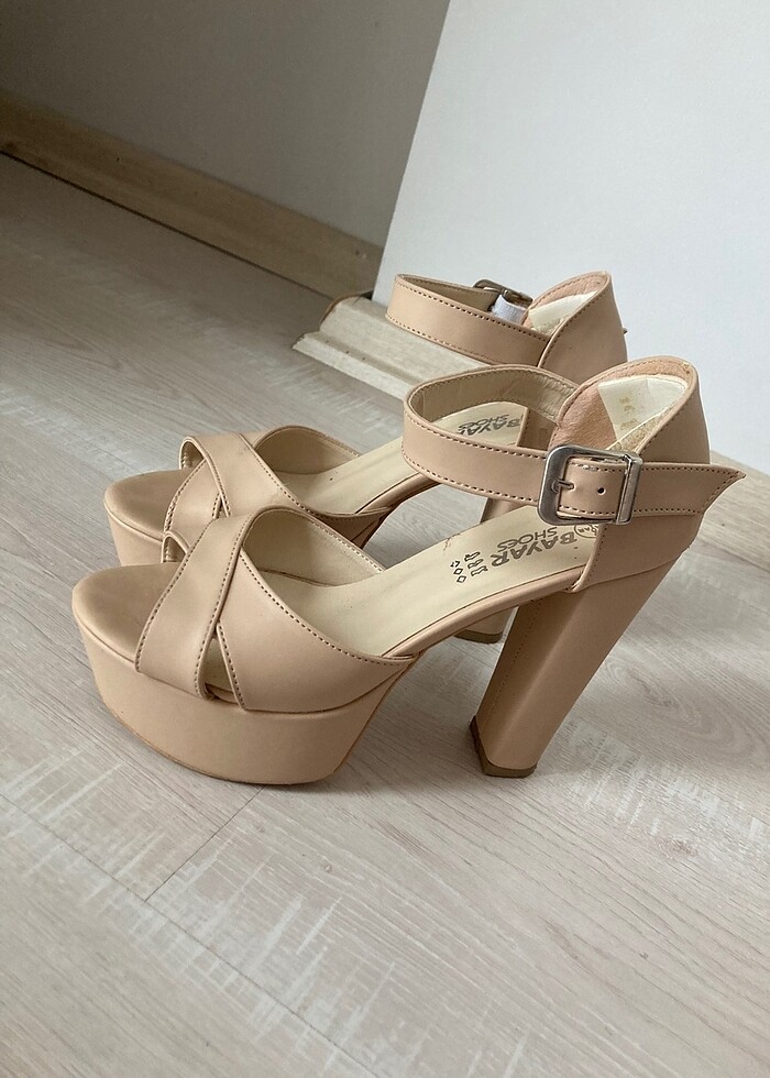 Pudra tonlarında platform topuk ayakkabı bir kez giyilmiştir.topuk boyu 12 cm dir