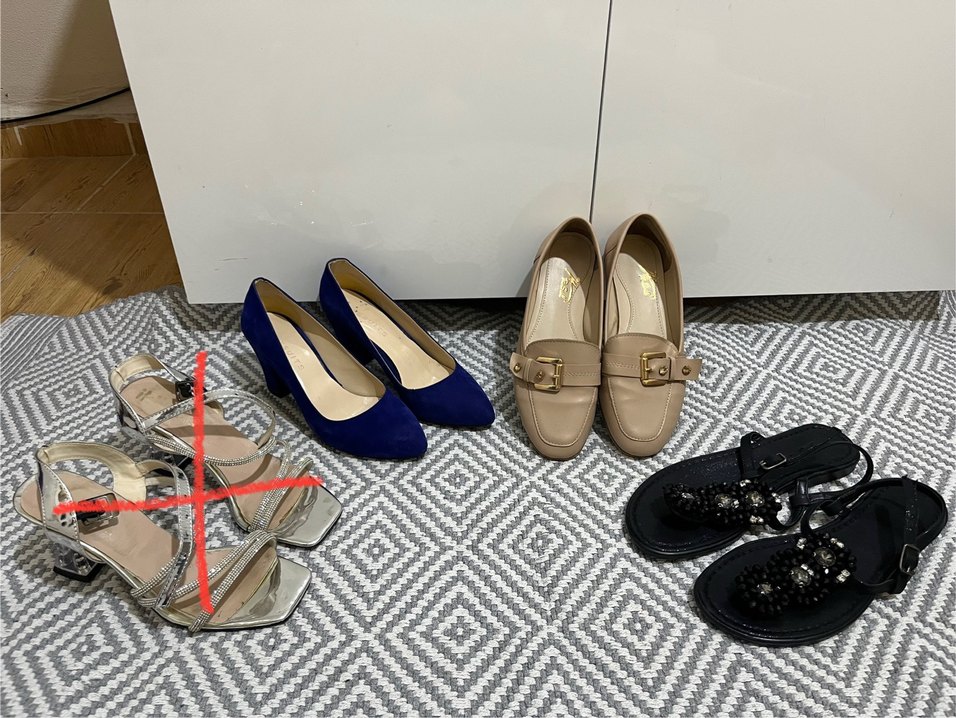 Saks mavisi olan en fazla iki defa kullanıldı 37 numara , vizon rengi babet bir defa kullanıldı yeni gibi 37 numara , siyah sandalet hiç kullanılmadı sıfırdır 39 numara ama 38 giyenlere olur