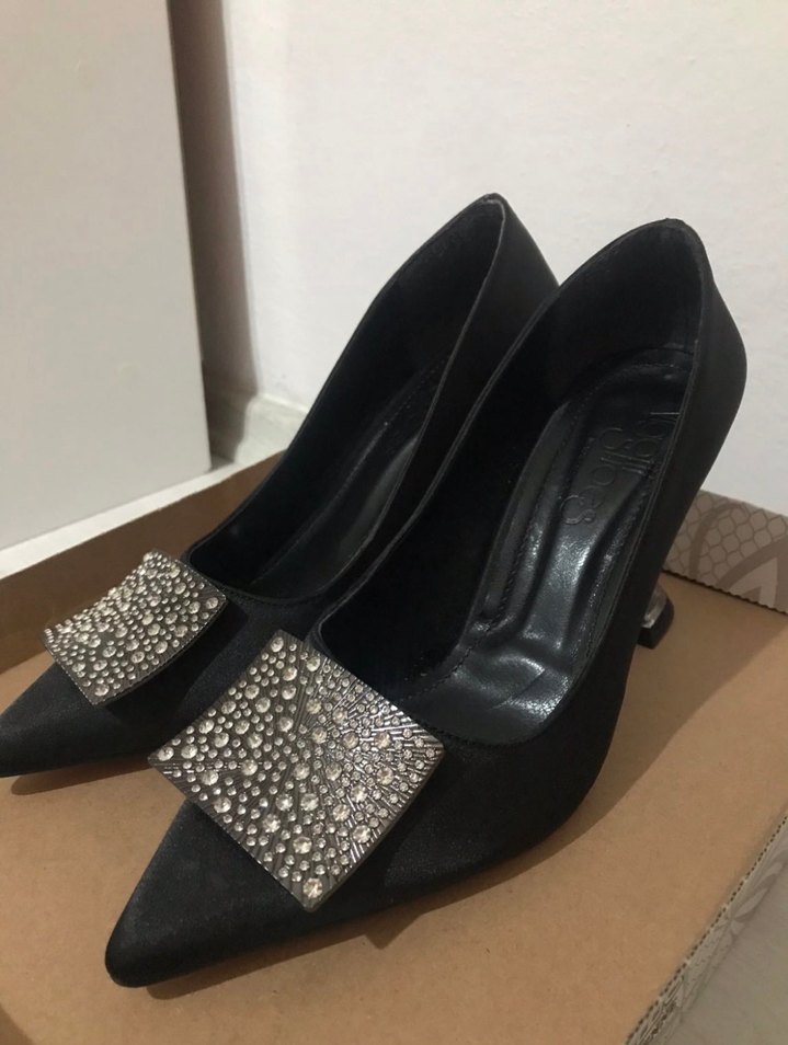 7 cm topuk 1-2 kere giyildi çok şık bir ayakkabı artık kullanmadığım için satıyorum