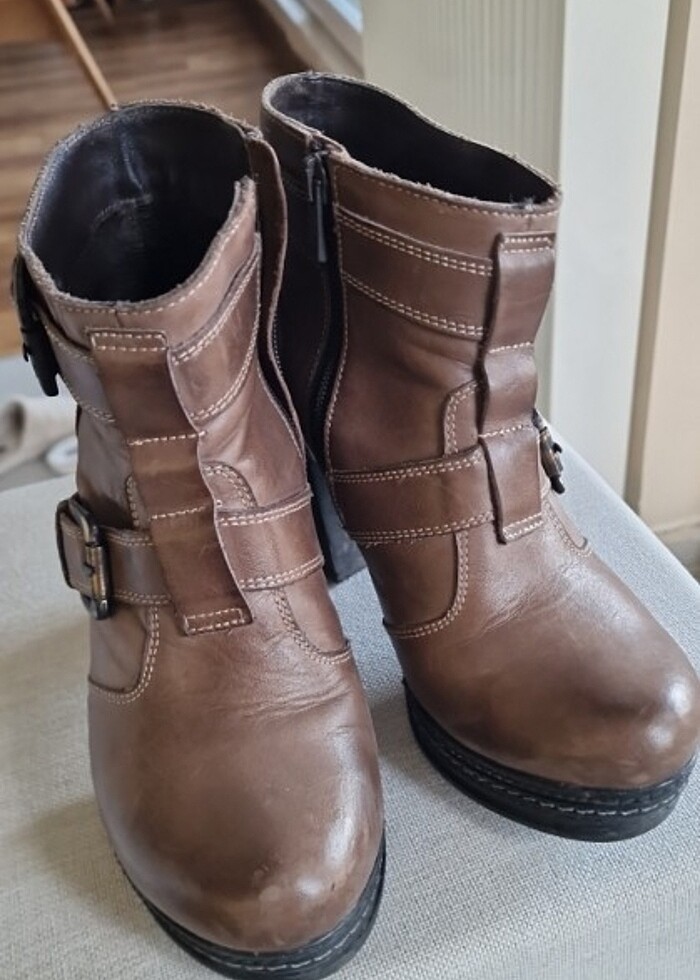 Hakiki deri, içi polarlı, az kullanılmış çok iyi durumda açık kahverenginde ayakkabı