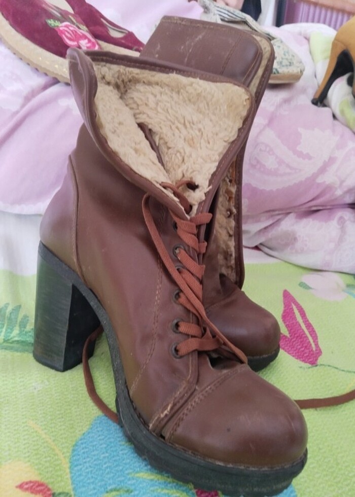 Kahverengi acı kahve topuklu içi yünlü bot , kusuru yoktur