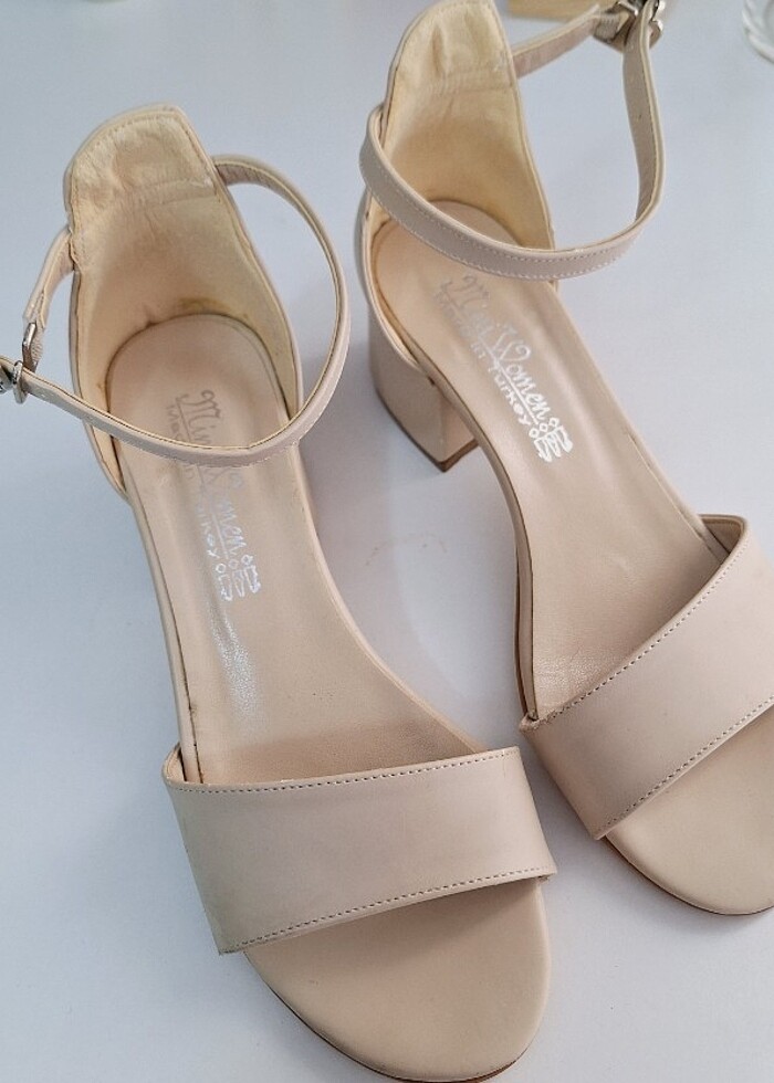 Mat tonda Bej rengidir.. 34 numaraya da uyumludur. Sadece 2 saat halı zeminde giyildi.