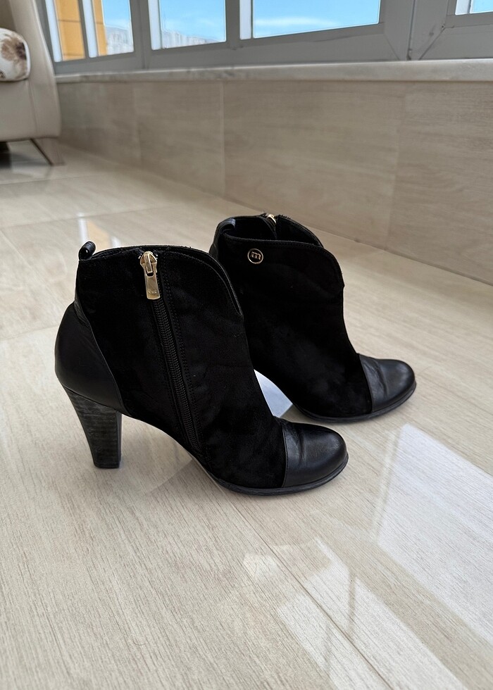 Bilek kısmı şık modelli nubuk ve deri geçişli hiçbir sorunu bulunmayan topuklu bot