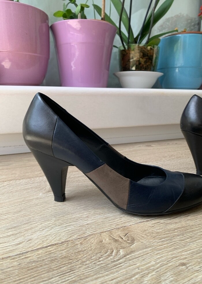 Betanın gerçek deri siyah , lacivert ve bej renklerinde topuklu derisinde fotoğrafladığım ince soyulma var bunun dışında deformasyon yok az giyilmiş topuklar da deformasyon yok