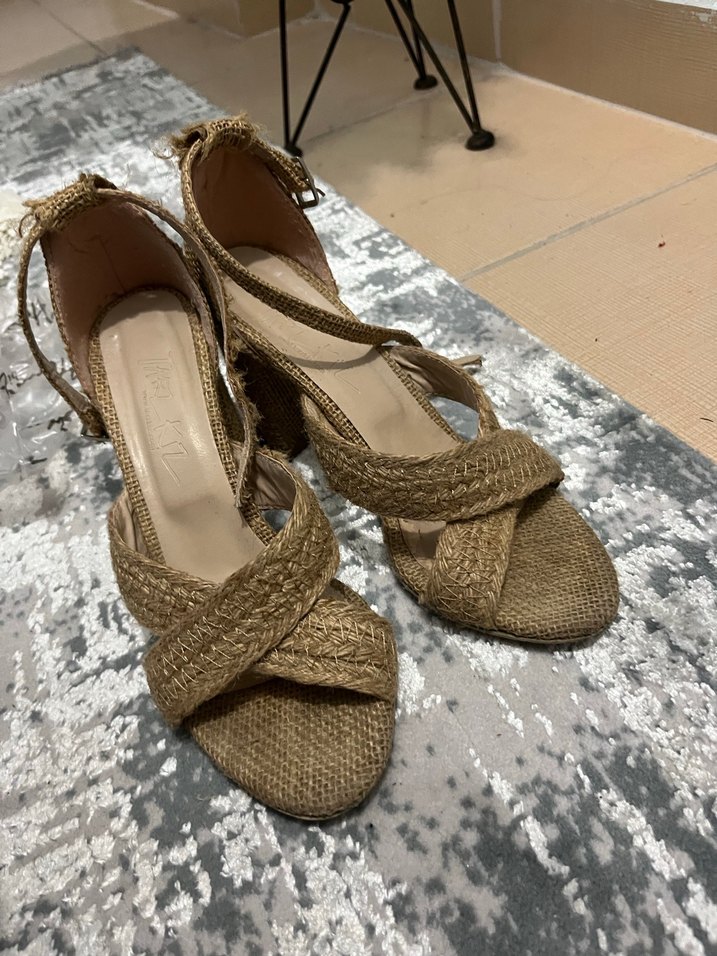 Topuklu hasır sandalet