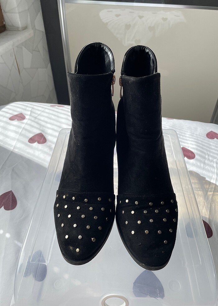 İki üç defa kullandım. Önündeki taşlardan bazıları düşmüş. Hepsi çıkarılabilir ya da küçük bir tadilatla taş eklenir Tek kusuru odur. Artık topuklu giyemediğim için satıyorum. Tam kalıp bir bot. Topuk boyu 8 cm