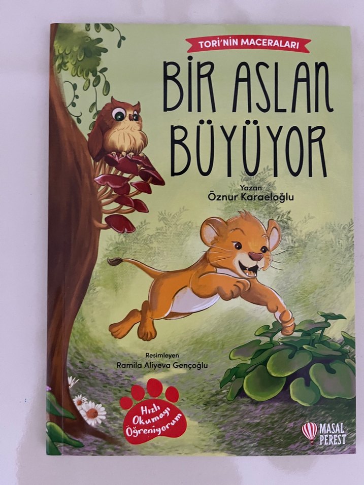 Öznur Karaceloğlu'nun yazdığı Tori'nin Maceraları serisinden "Bir Aslan Büyüyor" çocuk kitabı. Ramila Aliyeva Gençoğlu'nun çizimleriyle desteklenmiş, erken okuma becerilerini teşvik eder.