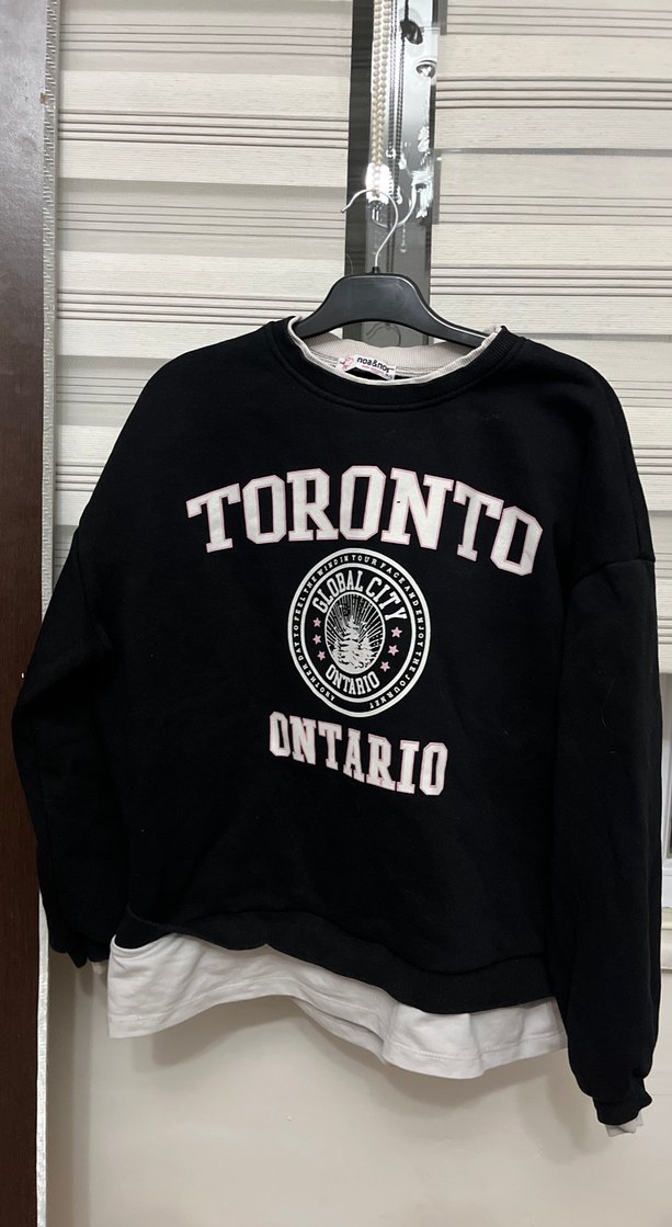 Siyah renkte, bol kesim ve uzun kollu, yuvarlak yakalı sweatshirt. "Toronto, Ontario" baskılı ve yumuşak, sıcak tutan kumaştan üretilmiştir.