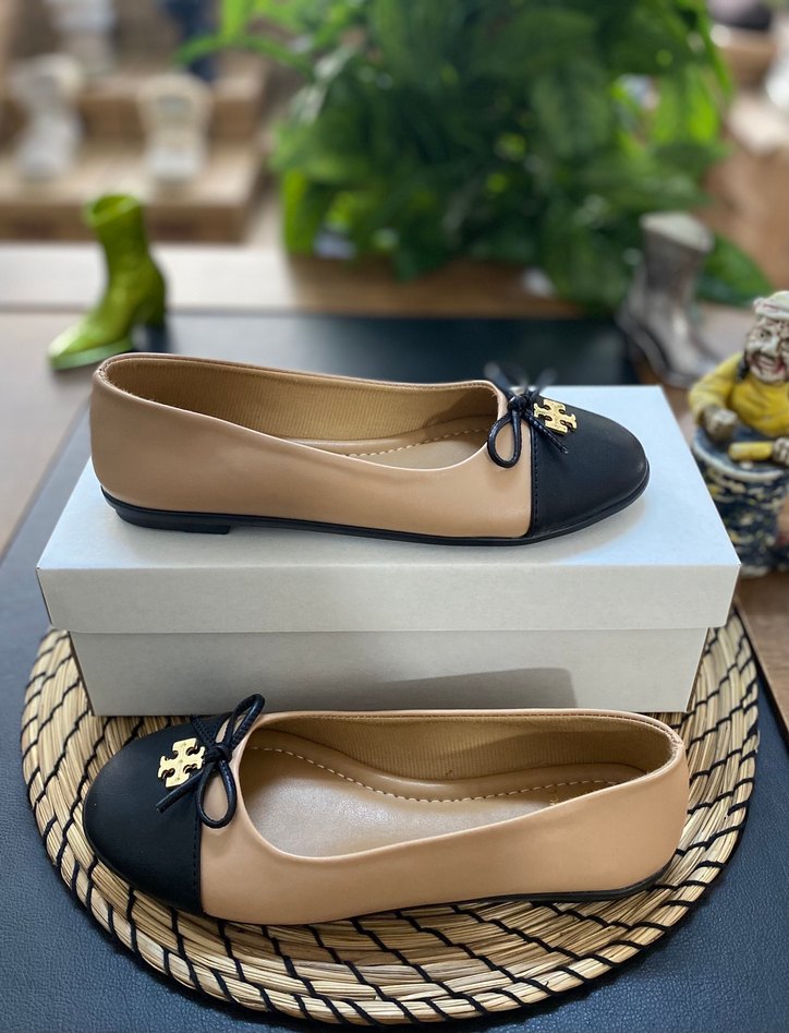 Tory Burch Bej Siyah Kadın Tokalı Babet,
