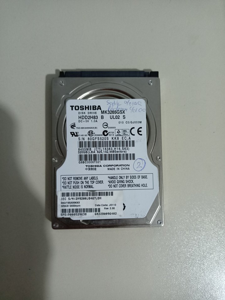 Toshiba marka 2.5 inç boyutunda, 320GB depolama kapasiteli gri ve bej renklerde sabit disk. MK3265GSX modeli güvenilir veri depolama sunar. sağlık %100 performans %100