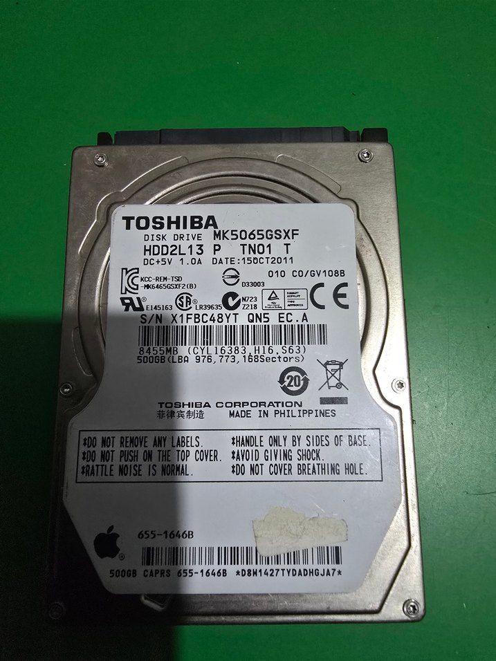 Toshiba 500GB kapasiteye sahip 2.5 inç sabit disk sürücü, MK5065GSXF modeli. Verileri güvenle saklar, 5400 RPM hızındadır Hatasız 2,5 harddisk