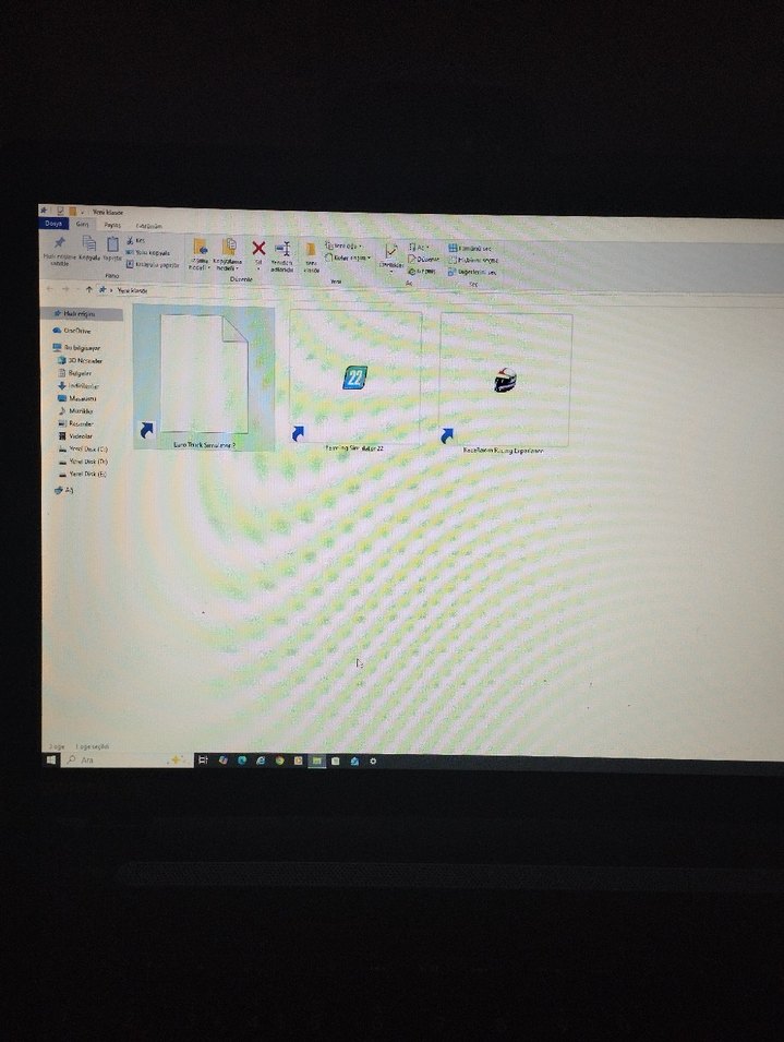 Haki renkli dizüstü bilgisayar, ekranda çeşitli dosya simgeleri gösteriyor. Günlük bilgisayar işleri için uygundur. CD yerine ekstra Harddisk takılmıştır tek kusuru klavye esc tuşu olduğu bölgedir