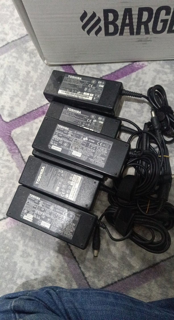 Çeşitli cihazlara uygun, uzun kablolu siyah Toshiba şarj cihazları. 15v 5 amper 19v 3.95amper ve kalın iğneli uçlu ve standart uç