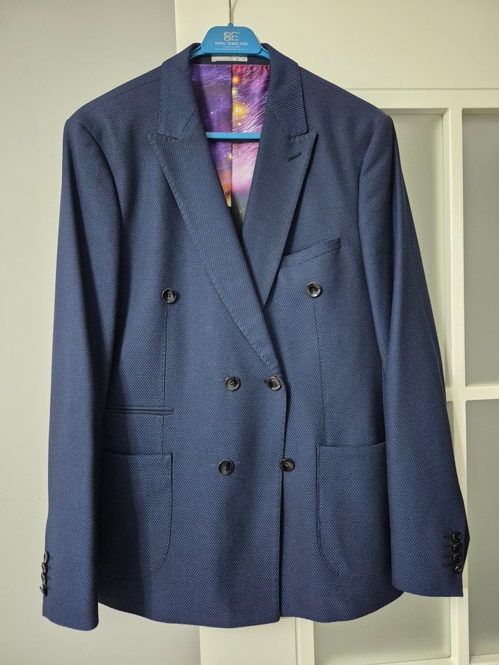 Gardırobunuzun Gizli İmzası: TOSS Philosophy Galaksi Detaylı Kruvaze Ceket Hiç giyilmemiş, kusursuz kondisyonda olan bu özel tasarım kruvaze ceket, dışarıdan bakıldığında asil bir lacivert şıklığı sunarken, iç kısmındaki büyüleyici galaksi temalı astarıyla tamamen benzersiz bir tarza sahip. Öne Çıkan Özellikler: Kondisyon: Sıfır, hiç giyilmedi. Tertemiz durumdadır. Marka/Seri: TOSS Philosophy - Özel Tasarım Serisi. Kesim: Modern Kruvaze (Double-Breasted) - Peak Lapel (Sivri Yaka). Renk: Derin Lacivert (Her ortama uygun, zamansız bir renk). Beden: 52 EU / 42 R USA (Modern kalıp). Kumaş: %64 PES, %34 Viskon, %2 Elastan karışımı sayesinde hem dökümlü durur hem de hareket özgürlüğü sağlar. Detaylar: İç astarında yüksek kaliteli galaksi baskısı ve kontrast renkli biyeler mevcuttur. Ceketin dokusu kendinden desenli ve oldukça kalitelidir.