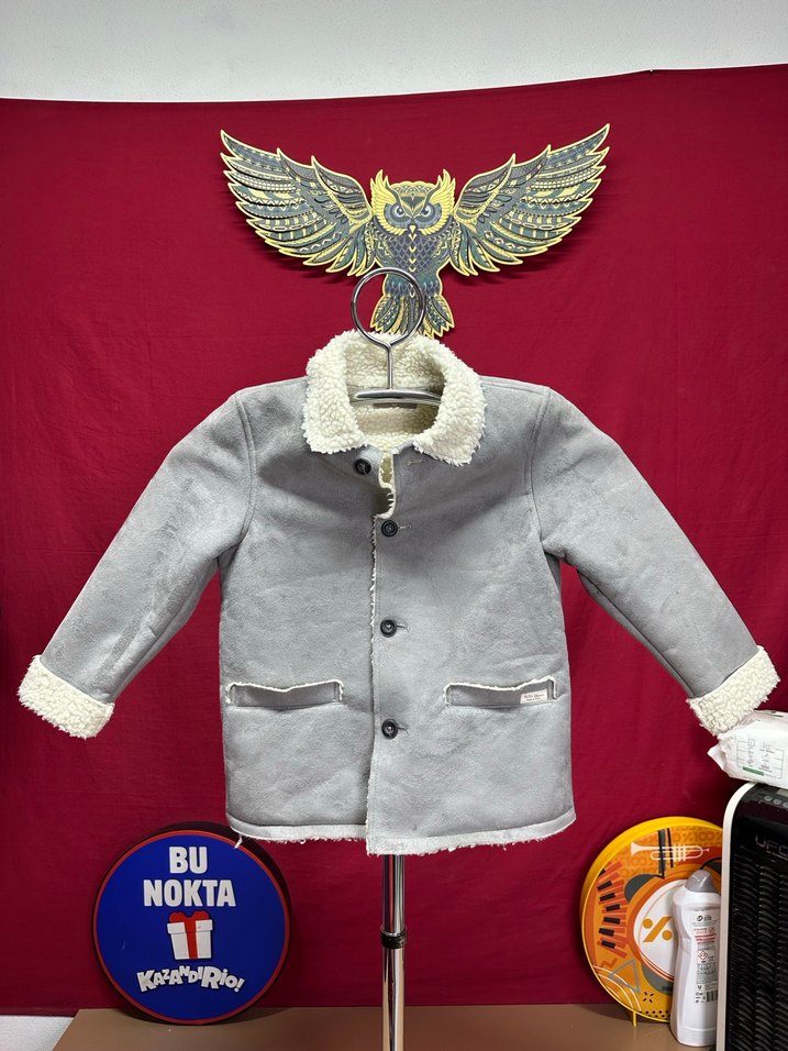 Gri renkli, yakası ve manşetleri kürklü kız çocuk midi boy ceket. Düğmeli, normal kesim, uzun kollu, günlük kullanıma uygun. Üzerinde 'BU NOKTA' yazılı düğmeler bulunur. Ürünümüz 5 yaş uyumlu ölçüleri resimlerde mevcuttur
