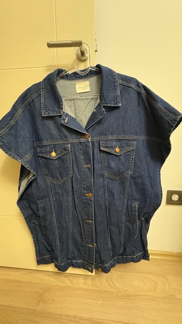 Rahat kesim, kısa kollu mavi kadın denim ceket. Düğmeli önü ve iki göğüs cebi bulunur. Günlük kullanıma uygun, parlak renkli sokak stili ceket.