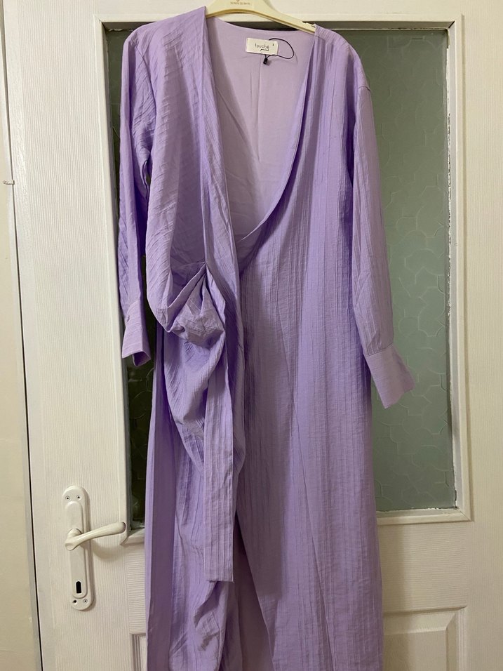 Pastel mor renkte, uzun kollu ve salaş kesime sahip kimono hiç kullanılmadı