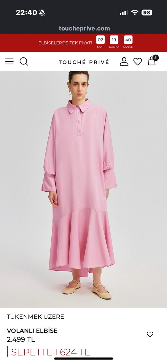 Touche marka Pembe Uzun Kollu Salaş Elbise