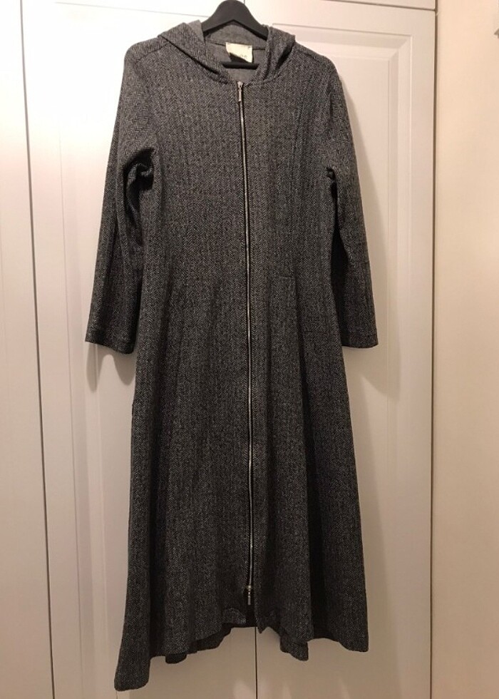Touche kap Omuz 45 Göğüs 55 Boy 120 Basen 70 Kol boyu 56 Bel 53 Pileli şapkalı cepli kap