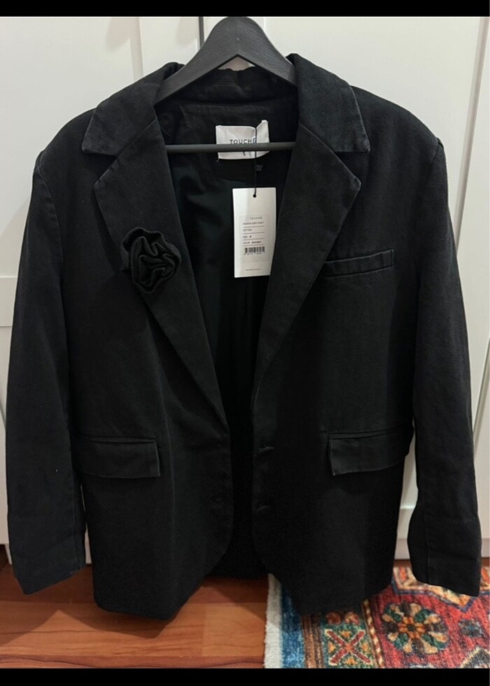 Antrasit renkli, pamuk astarlı hafif eskitilmiş tarz denim ceket. Ürün yeni ve etiketli. Mevsimlik.Oversize kesim, m bedene de olabilir. Yakasındaki gül broşu iğneli, çıkarılabilir.Umarım severek giyecek birine gider. #touche #denim #ceket