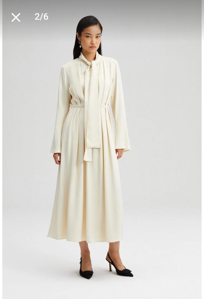36 beden, krem rengi, touche elbise, sadece bir kez giyildi, boydan astarı da var bulamadigim icin fotolara koyamadım ama onu da gondericem. Boy 128 cm, iki koltuk altı arası 47 cm