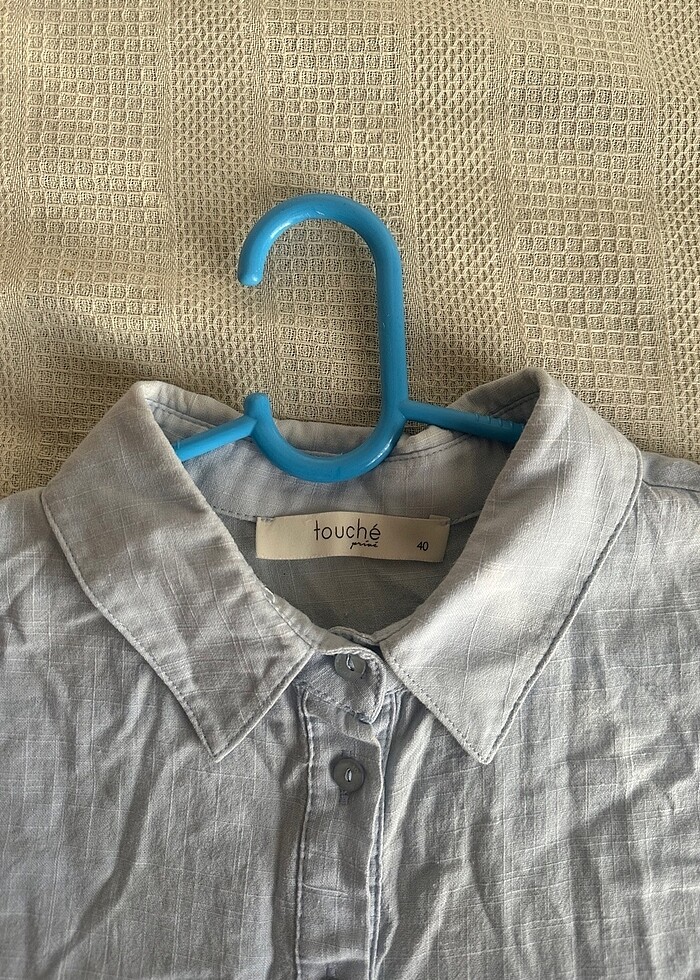 Tatlı bir mavisi var. Görüntü olarak çok şirin bir gömlek. Bol kalıptır.