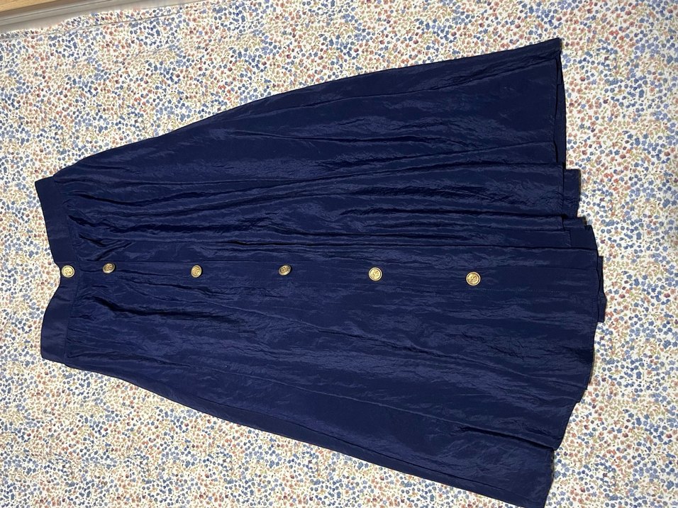 Parlak sentetik kumaştan düğmeli uzun navy etek. Hiç giyilmedi ama etiketi yok Beden uyusmazlıgı yasadım