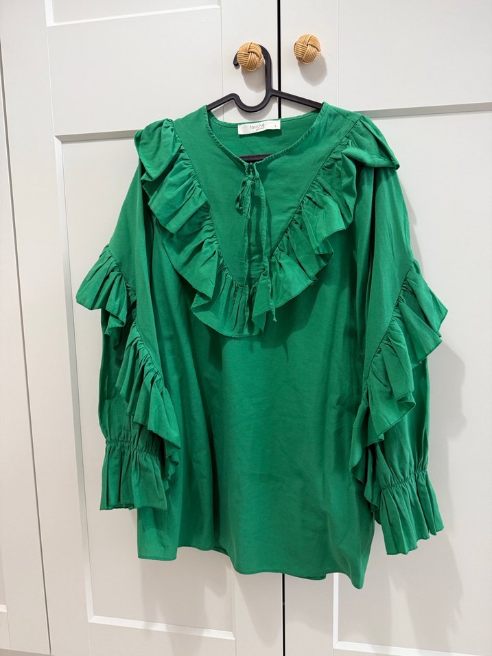 Touche Yeşil Fırfırlı Bohem tunik