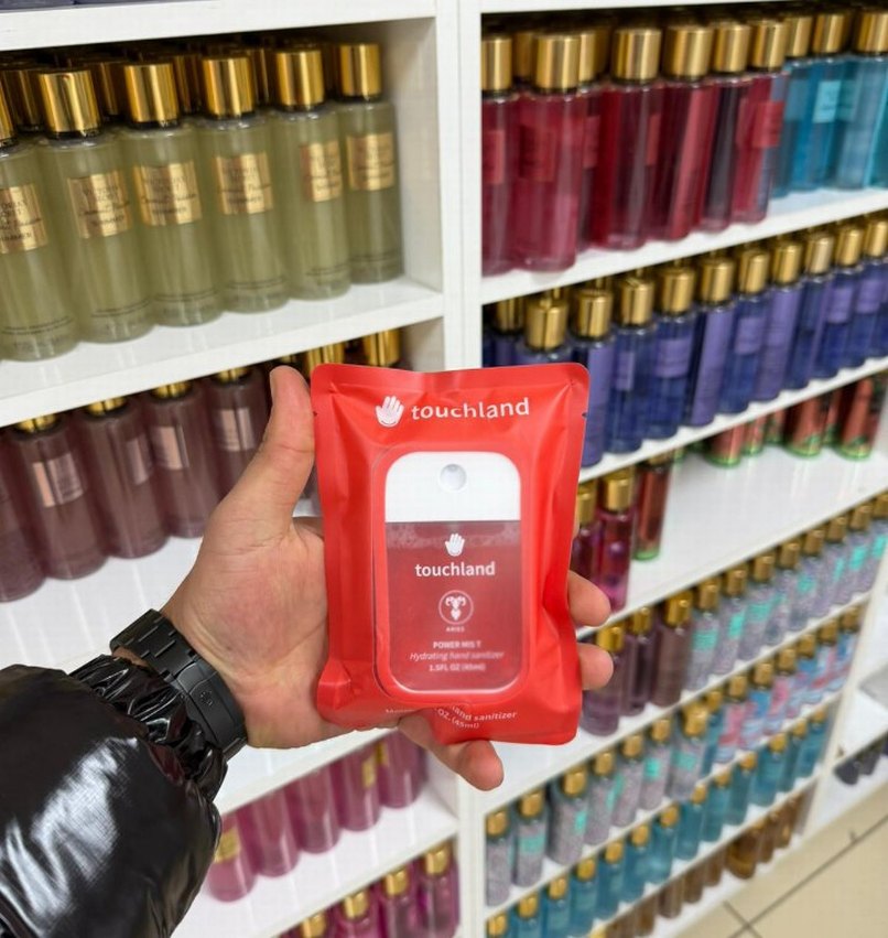 Touchland nemlendirici el kremi, kullanımı kolay kırmızı paket içinde, elleri nemlendirmek için uygundur. Seyahat için ideal.