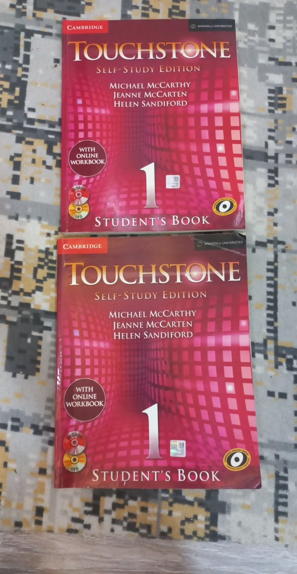 Michael McCarthy, Jeanne McCarten ve Helen Sandiford tarafından hazırlanan Touchstone 1 Öğrenci Kitabı, online çalışma kitabı ile birlikte sunulur. birinin ilk 30 sayfası çizilmiş diğeri temiz. ikiside aynı kitaptır. DVD birinde var birinde yoktur. adet fiyatı 130 tl ayrı almak isterseniz.
